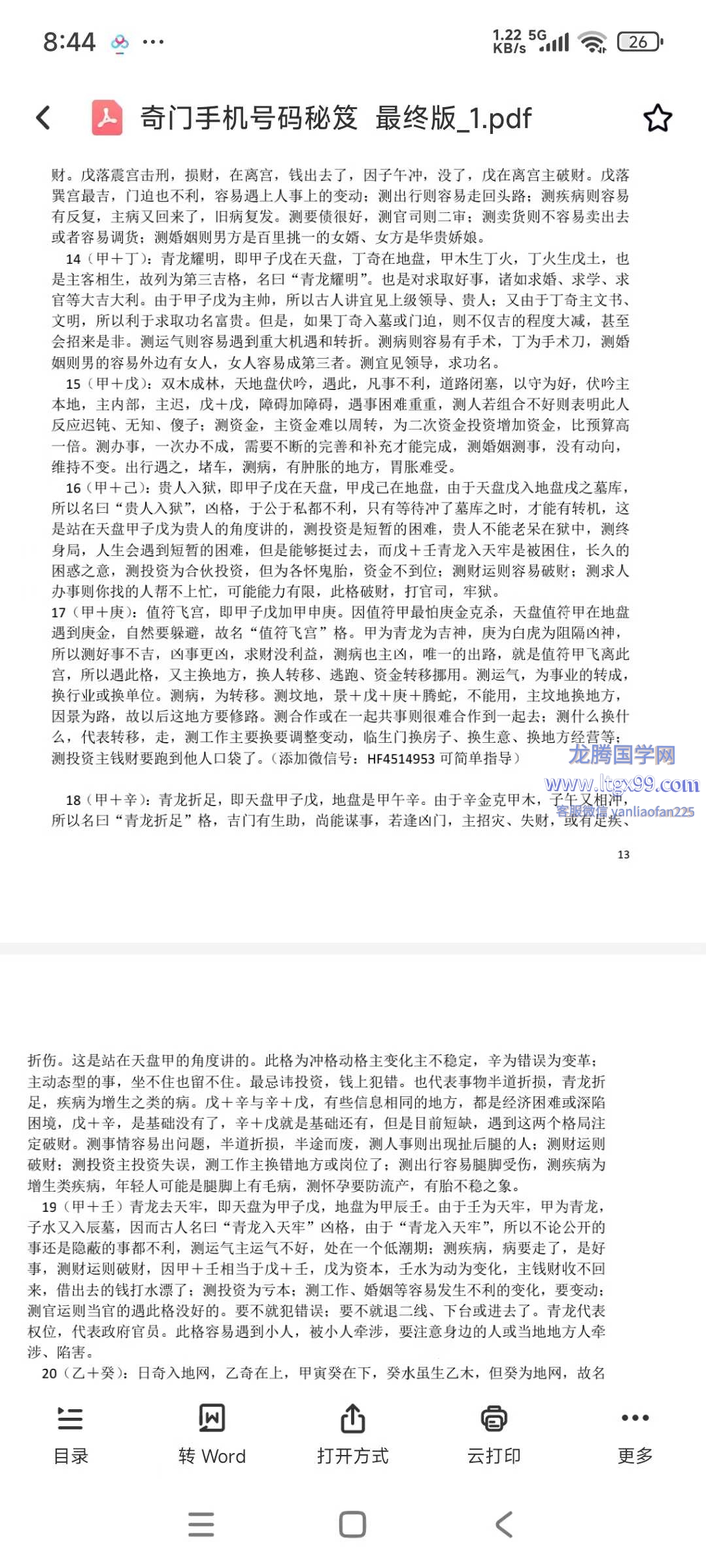 奇门遁甲机手号码秘笈114页-实战必读,(内训资料,不外传)小白到到高手是就一本料资的事,