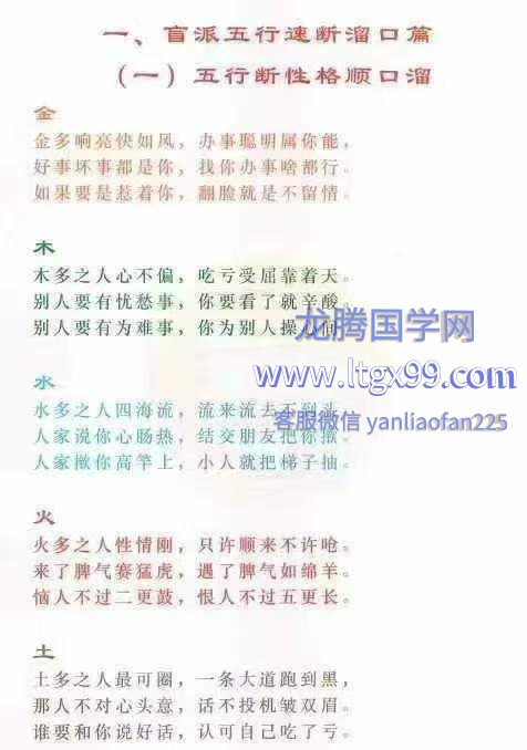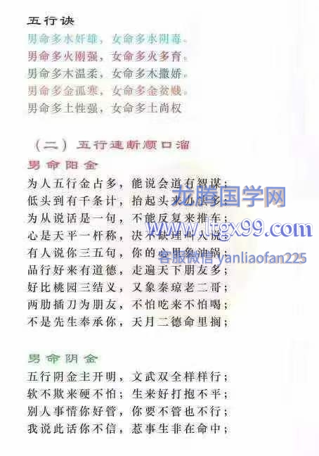 (二)五行速断顺口溜.
