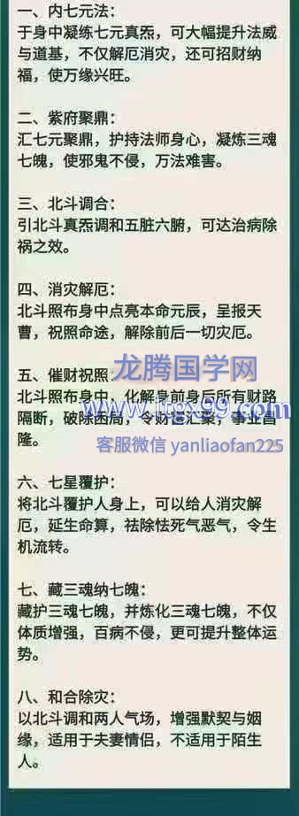 北斗照布身中点亮本命元辰,进行告报天曹,祝照本命元辰,就可以解除前后一切灾厄。