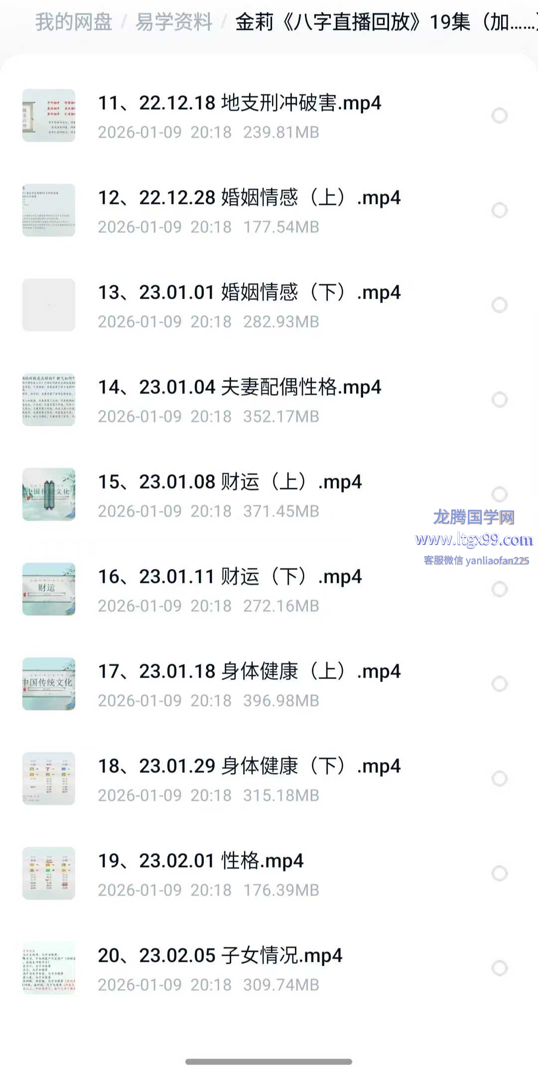 金莉《八字直播回放》20集视频(缺1集视频)教学视频19集,具体目录如下: