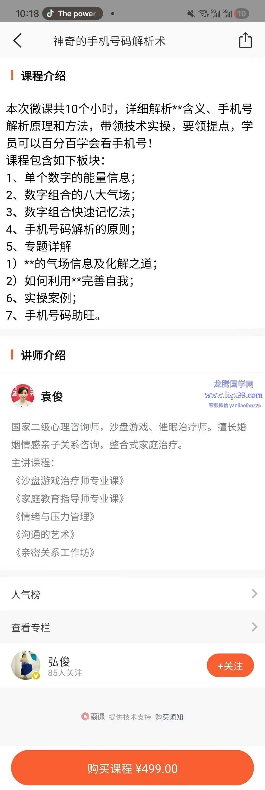 这门课程由国家二级心理咨询师袁俊主讲,耗时10小时深度拆解手机号码的数字密码,从基础数字能量到实操案例解析,手把手教你掌握手机号解析的核心方法,轻松读懂号码背后的气场与运势,还能学会借助号码助旺自身发展。