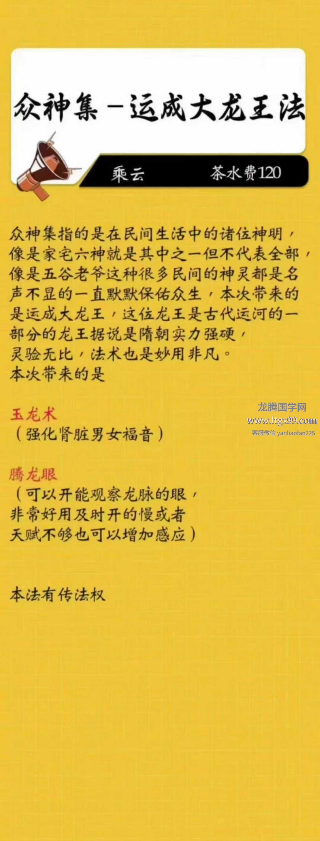 众神集指的是在民间生活中的诸位神明,像是家宅六神就是其中之一但不代表全部像是五谷老爷这种很多民间的神灵都是名声不显的一直默默保佑众生,本次带来的是运成大龙王,这位龙王是古代运河的一部分的龙王据说是隋朝实力强硬'灵验无比,法术也是妙用非凡。本次带来的是玉龙术