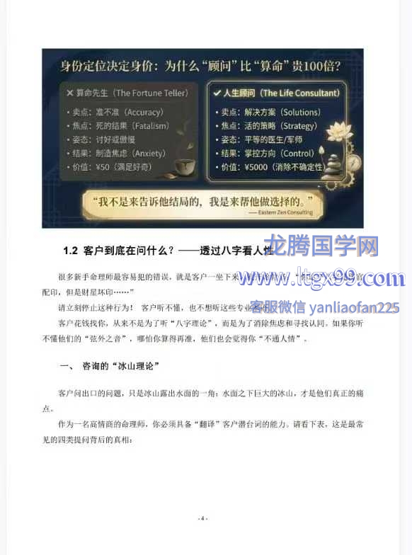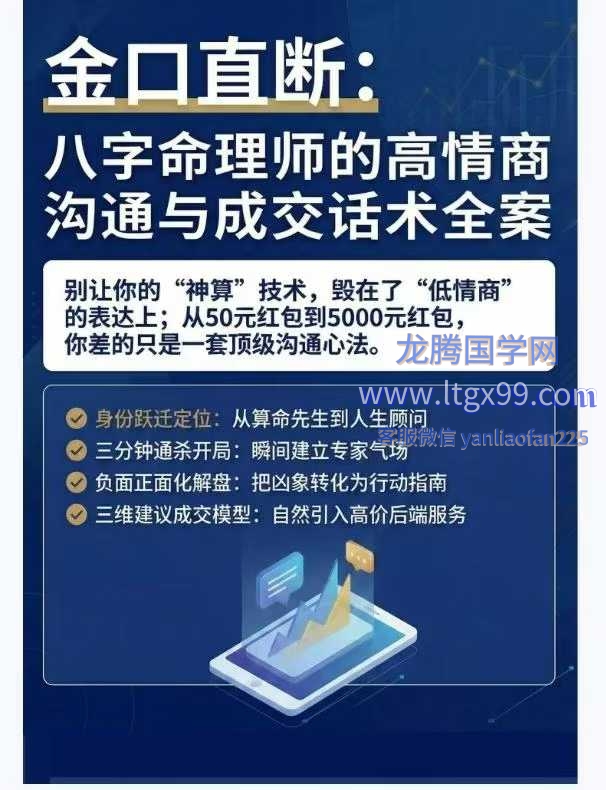 命理师成交话术 八字命理师的高情商沟通与成交话术全案64页:为什么你技的术不比别人差,但挂金能只收 50 块缘随红包?