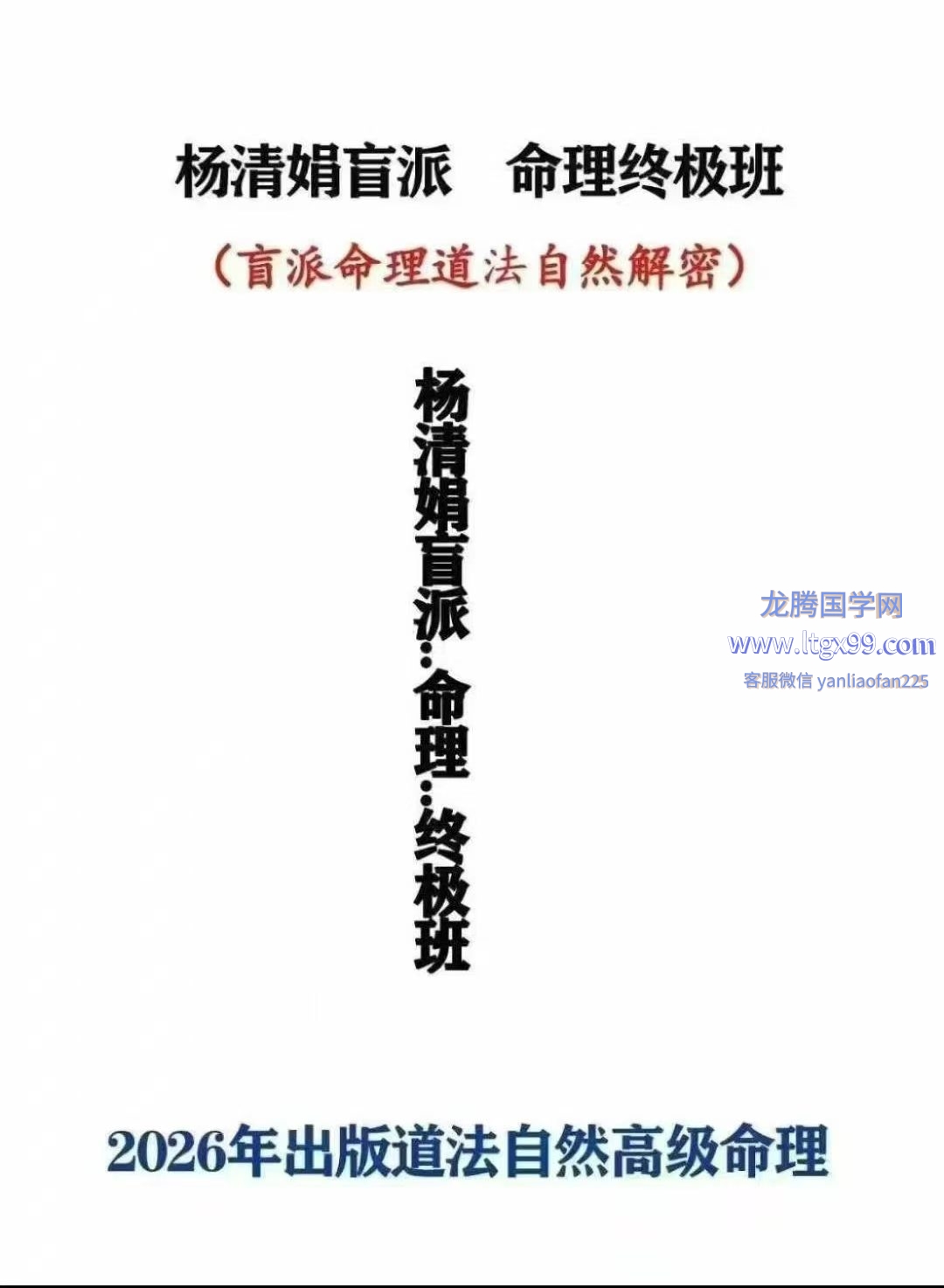 杨清娟盲派理命终极班《盲命派理道自法然解密》300页,2026年出版法道自然高级命理!!!,电书子