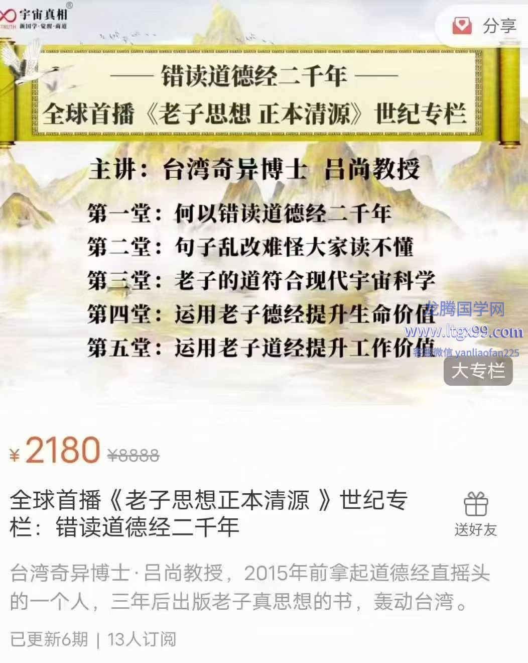 吕尚教授全球首播《老子思想正本清源》世纪专栏 错读道德经二千年6集视频课