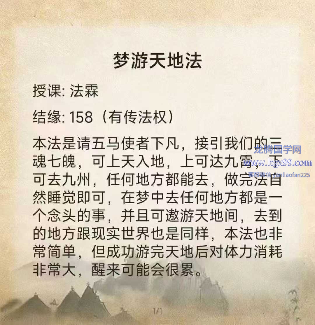 本法是请五马使者下凡,接引我们的三魂七魄,可上天入地,上可达九霄,下可去九州,任何地方都能去,做完法自然睡觉即可,在梦中去任何地方都是一个念头的事,并且可遨游天地间,去到的地方跟现实世界也是同样,本法也非常简单,但成功游完天地后对体力消耗非常大,醒来可能会很累。